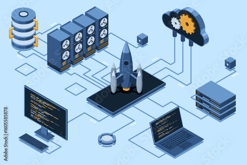Концепция процесса 3D-печати изометрическая векторная иллюстрация. Технология изготовления и прототип. Процесс создания трехмерного объекта.