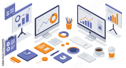 Блок-схема сотовой сети 5G, плоская векторная изометрическая иллюстрация. Мобильная сеть 5-го поколения. Услуга беспроводной мобильной связи.