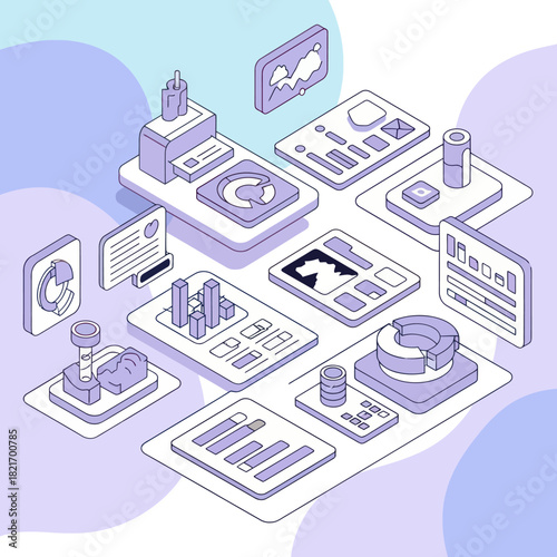 мобильный телефон 5g с приложением IoT, плоская векторная изометрическая иллюстрация. Интернет вещей, технологии "умного дома". сотовая сеть 5g, соединяющая машины, объекты и устройства.