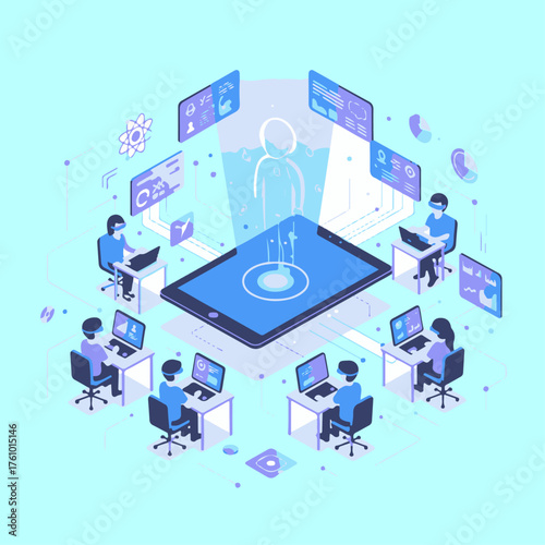 Баннер веб-сайта сети 5G, шаблон дизайна веб-страницы, изометрическая светящаяся неоновая векторная иллюстрация. Высокая скорость передачи данных. Пятое поколение беспроводной технологии.