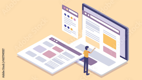 Блок-схема беспроводной технологии сети 5G, плоская векторная изометрическая иллюстрация. потребитель 5g с сотовым телефоном, вышкой связи, сетевым сервером, измерителем скорости Интернета, ноутбуком, смартфоном.