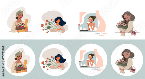 8-шаговый мужской уход за кожей лица, плоская векторная иллюстрация. Умывание лица, бритье бритвой с использованием пены для бритья, мыла или крема и нанесение лосьона после бритья для гладкой кожи. Мужской уход, процедура бритья.