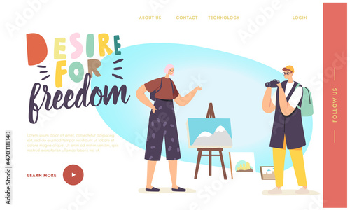 Дизайн целевой страницы с акрофобией, набор шаблонов баннеров веб-сайта, плоская векторная иллюстрация. У молодого испуганного человека акрофобия. Тревожное расстройство. Мужской персонаж испытывает панику из-за страха высоты.