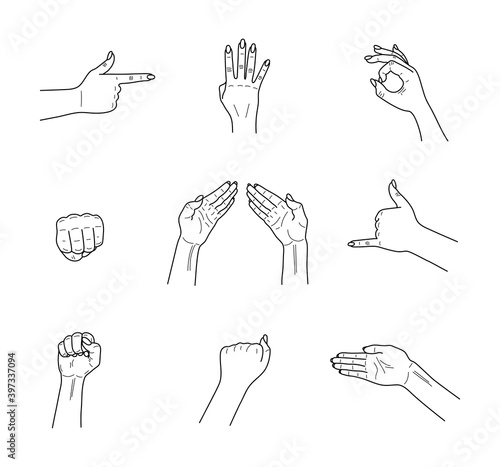 Техника точечного массажа рук, векторная иллюстрация. Женский персонаж нажимает на точки на своих пальцах, ладонях, запястьях, чтобы облегчить головную боль, боль в спине, тошноту и тревожные симптомы и т.д.
