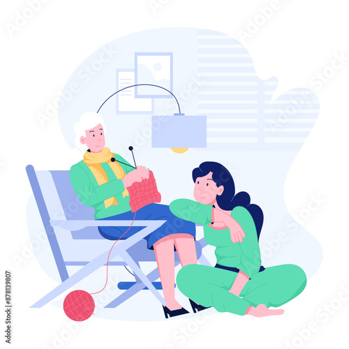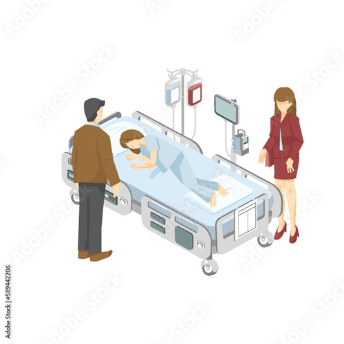 Взрослая дочь навещает больную мать в больнице векторный значок, изолированный на белом фоне
