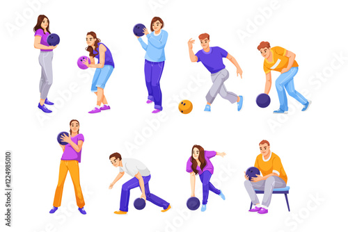 Взрослые и дети стоят, сидят в разных позах, набор изометрических значков, плоская векторная изолированная иллюстрация. Офисные работники, лаборанты, дети с ноутбуком, мобильным телефоном, планшетом, карандашом.