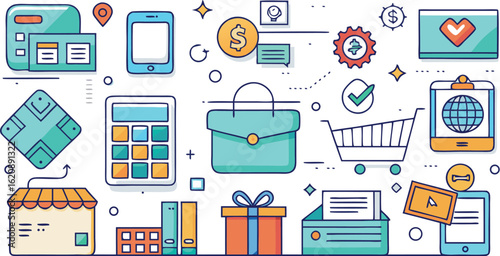 Набор шаблонов векторных плакатов для взрослых, осваивающих новые технологии. Взрослые люди используют мобильный телефон, планшет, портативный компьютер, чтобы оставаться в курсе событий, общаться с друзьями, семьей и по другим причинам.