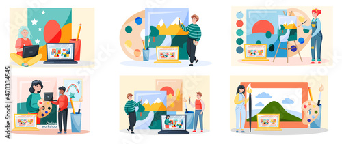 Персонажи гибкой разработки программного обеспечения, плоская векторная изолированная иллюстрация. Разработчики перемещают стикеры на доске задач канбан. Гибкое управление проектами, методология канбан.