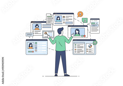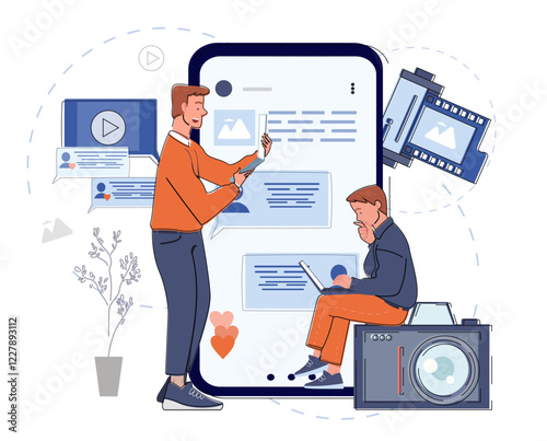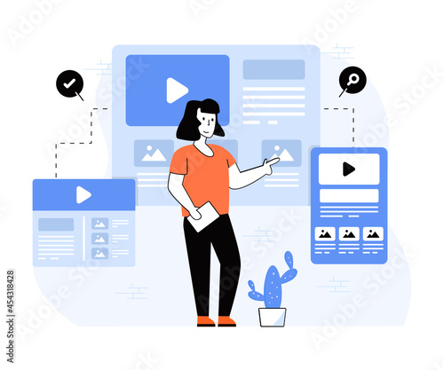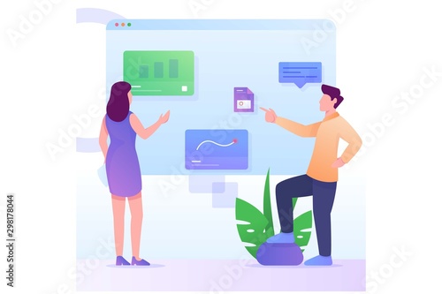 Искусственный интеллект работает лучше, чем человек, плоская векторная иллюстрация. Робот-машина и деловая женщина работают на компьютерах и делают пометки в контрольном списке. Искусственный интеллект против производительности человека. Превосходство роботов.