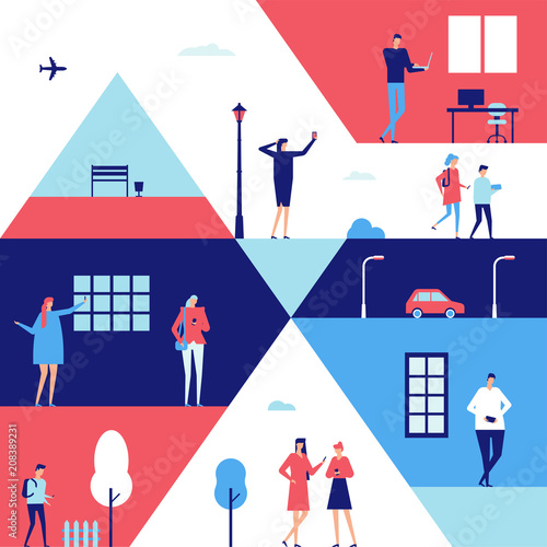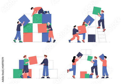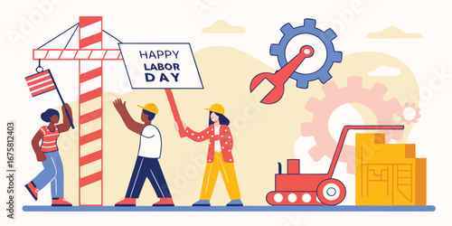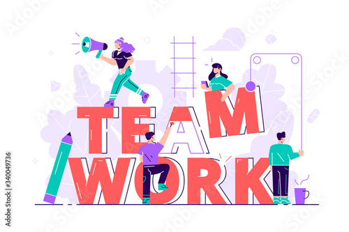 Шаблон векторного баннера вспомогательной типографии. Композиция проекта гуманитарной помощи с участием волонтеров-социальных работников, раздающих коробки для пожертвований нуждающимся людям. Гуманитарная помощь, благотворительность и пожертвования.