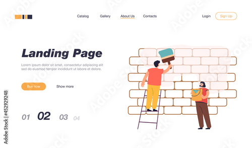 Векторный шаблон веб-сайта службы кондиционирования воздуха, дизайн веб-страницы и целевой страницы для разработки веб-сайтов и мобильных сайтов. Изометрические техники устанавливают кондиционер. Техническое обслуживание и ремонт.
