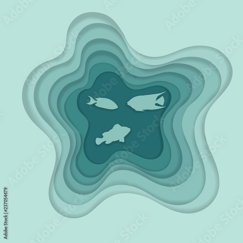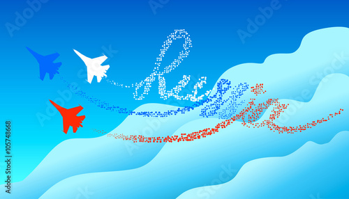 Воздушное путешествие, векторный вид с высоты птичьего полета, слоистая иллюстрация в стиле вырезки из бумаги. Самолет летит в Париж над городскими зданиями. Путешествуйте по всему миру, откройте для себя новую концепцию мира.