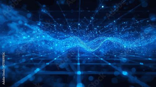 Векторный многоугольный художественный стиль авиалайнера. Самолетная низкополигональная каркасная сетка с рассеянными частицами и световыми эффектами на темно-синем фоне. Шаблон дизайна баннера плаката авиакомпании с пространством для копирования.