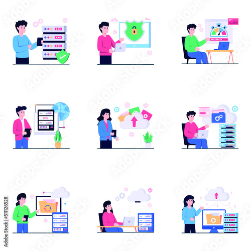 Векторная иллюстрация пилота, стюардессы, стюардессы авиакомпании, агента по регистрации на рейс, агента по продаже билетов, сотрудников службы безопасности и пассажиров. Плоские символы людей в аэропорту, значки, выделенные на белом фоне.