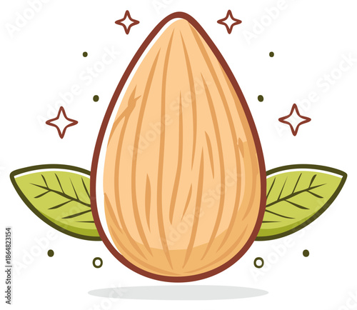 Миндальное семя с зеленым листом в векторной иконке 3d-дизайна milk splash, выделенной на белом фоне. Рекламный макет
