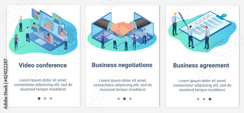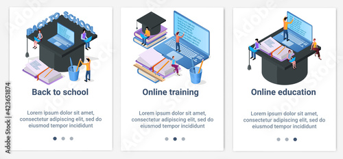 Векторный набор экранов для загрузки мобильных приложений. Солнечные панели, ветряные турбины, зеленый эко-дом и изометрические значки электромобилей. Зеленые инновации, альтернативные источники энергии веб-шаблоны, баннеры.