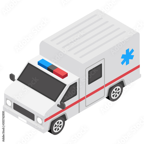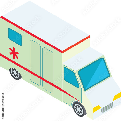 Вектор автомобиля скорой помощи. Значок грузовика-фургона скорой помощи. Транспорт фельдшера больницы, выделенный на белом фоне