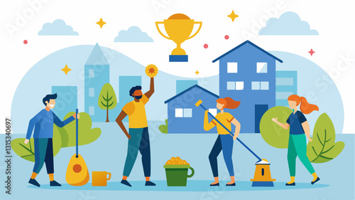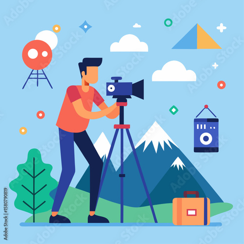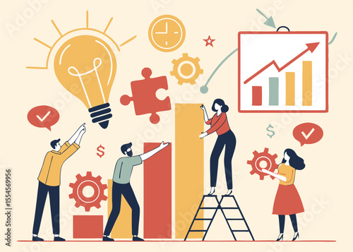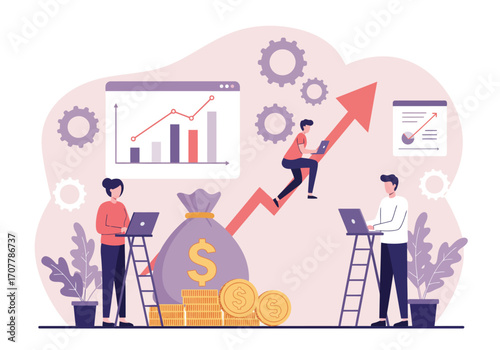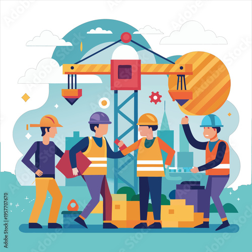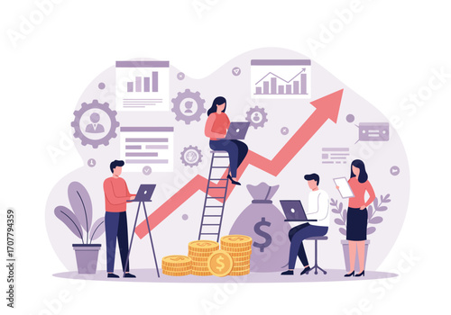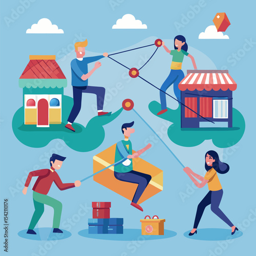 Колесо обозрения, мужские и женские персонажи, векторная иллюстрация. Композиция аттракционов парка развлечений для веб-баннера, страницы веб-сайта и т.д.
