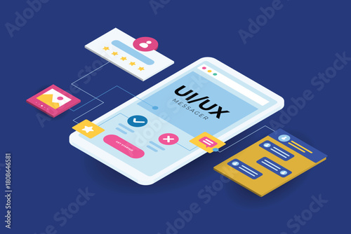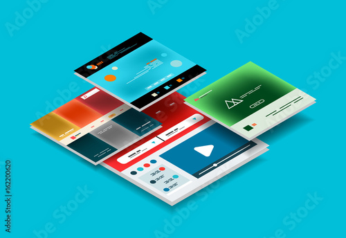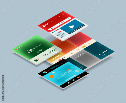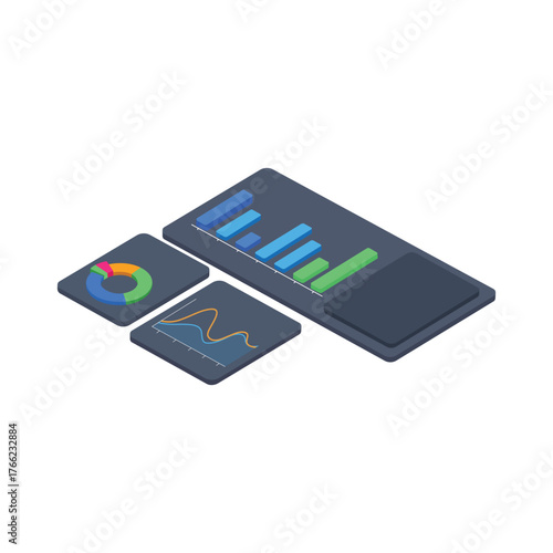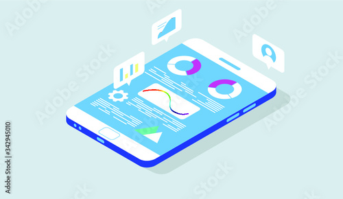 Векторная плоская изометрическая иллюстрация концепции аналитического приложения. Смартфоны с графиками на экране.