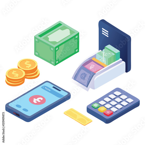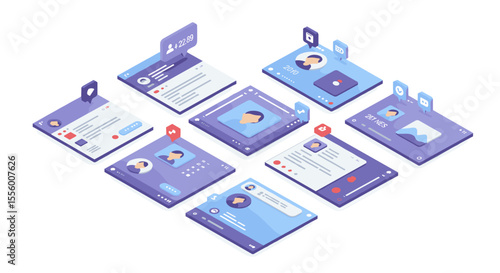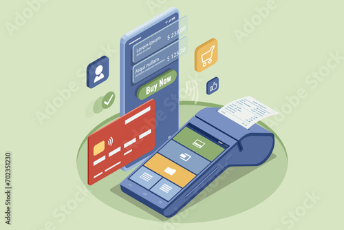 Векторная плоская изометрическая иллюстрация концепции аналитического приложения. Смартфоны с графиками на экране.