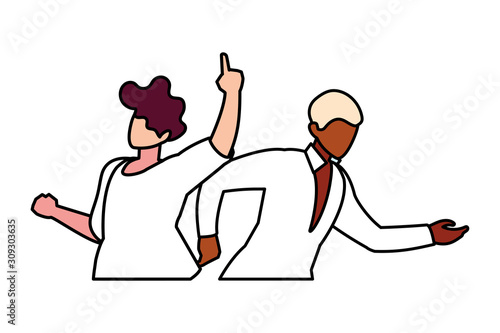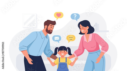 Разгневанные отец и мать, кричащие в мегафоны, ругающие своего сына, плоская векторная иллюстрация. Конфликт родителей и детей, взаимоотношения.