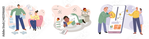 Разгневанный отец кричит в мегафон, ругая своего испуганного сына, плоская векторная иллюстрация. Конфликт отца и сына, отношения между родителями и детьми.
