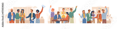 Агрессивные люди ссорятся на рабочем месте в офисе вектор. Иллюстрация проблемы в рабочей коммуникации. Сцена конфликта. Разгневанные коллеги спорят, кричат и ссорятся, изолированные на белом