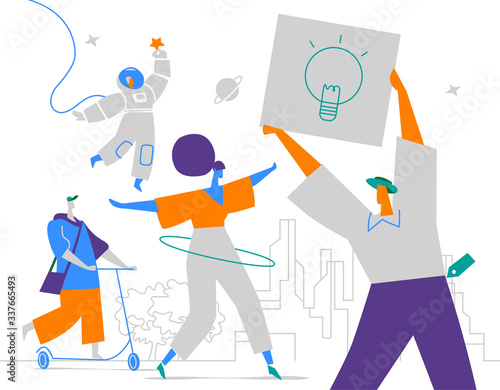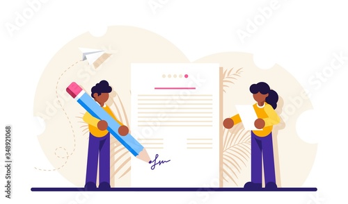 Огромный милый щенок получает стрижку, микро-мужские и женские персонажи, зоомагазины, предоставляющие услуги по уходу за собаками, векторная иллюстрация. Композиция парикмахерского зоосалона для веб-баннера, страницы веб-сайта и т.д.