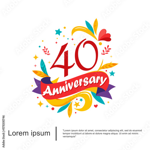 векторный шаблон поздравительной открытки с приглашением на 5-ю годовщину. Лавровый венок, лента, праздничный фейерверк и многослойные вырезанные из бумаги цифры в стиле от 0 до 9.