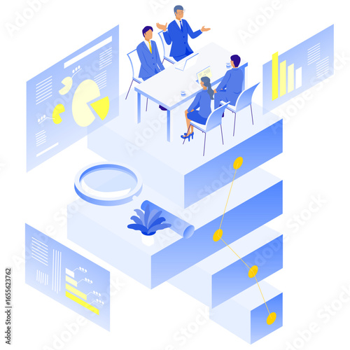 Антикоррупционные социальные протесты, плоская векторная изометрическая иллюстрация. Активисты с плакатами, полиция. Общественные движения против коррупции, взяточничества.