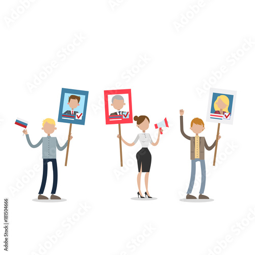Векторная иллюстрация концепции протеста против вакцинации в 3d-изометрическом стиле. Движение против вакса. Люди протестуют против обязательной вакцинации и врачей со шприцем.