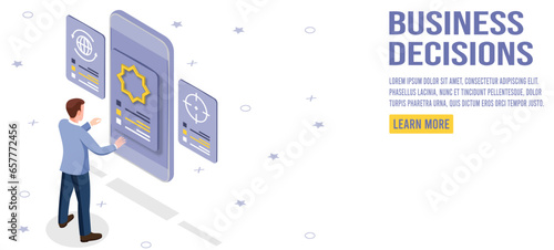 Векторный шаблон веб-сайта для разработки приложений, дизайн веб-страницы и целевой страницы для разработки веб-сайтов и мобильных сайтов. Большой смартфон и крошечные люди создают программное приложение для мобильного устройства.