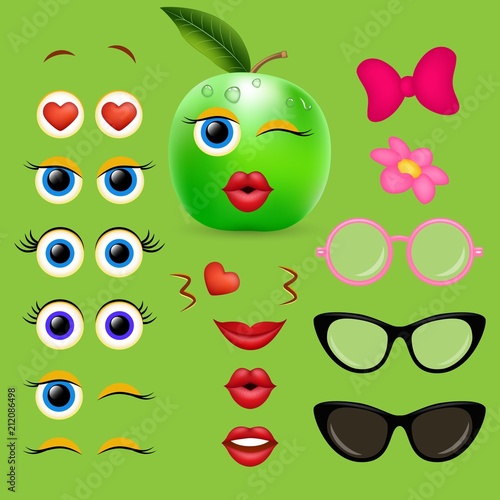 Создатель мужских эмодзи из зеленого яблока, создатель смайликов. Векторный набор частей тела смайликов для вашего собственного создания крутых смайликов.