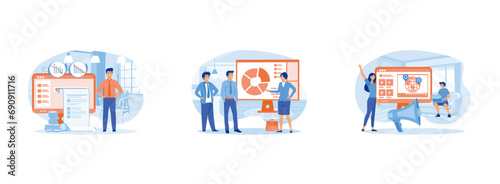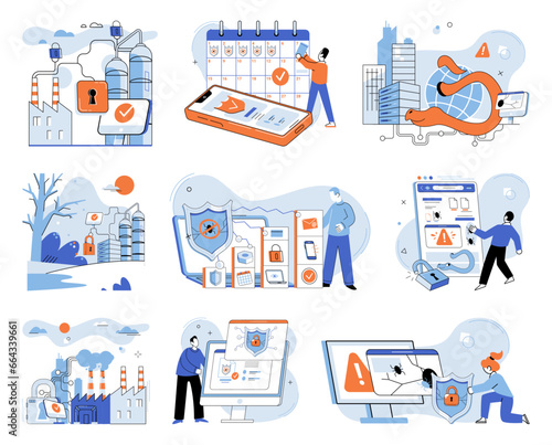 Ремонт бытовой техники дизайн целевой страницы, набор шаблонов баннеров веб-сайта, плоская векторная иллюстрация. Ремонтник персонажей чинит стиральную машину, микроволновую печь, холодильник. Техническое обслуживание бытовой техники.
