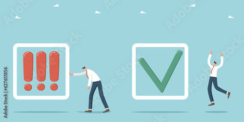Заявления на визу с одобренными и отклоненными штампами, счастливые и грустные персонажи мультфильмов бизнесменов, векторная иллюстрация дизайна в плоском стиле.