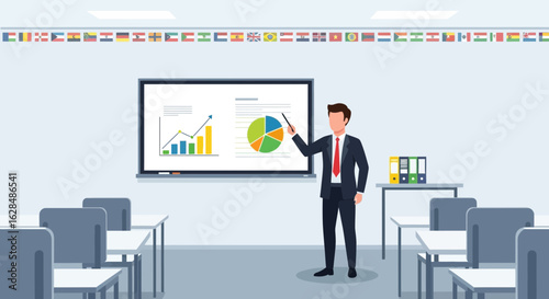 Конференция арабского бизнесмена, совещание, плоская векторная изометрическая иллюстрация. Международный семинар, практикум или тренинг.