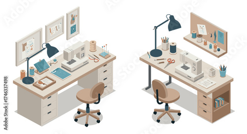Арабский бизнесмен-мусульманин в таубе, арабская мужская традиционная одежда, работающая в офисе, плоская векторная изометрическая иллюстрация. Офисная обстановка, рабочее место, рабочий процесс.