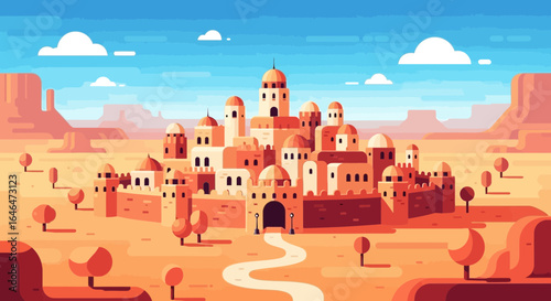 Векторная иллюстрация концепции археологических раскопок в плоском стиле. Археологи, остатки поселений, археологические инструменты.