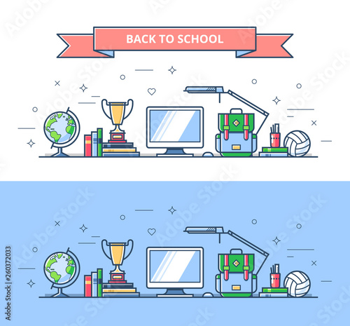 Векторная иллюстрация рабочего места архитекторов и дизайнеров в плоском стиле. Инструменты для рисования и инструменты, изолированные на белом фоне. Чертежная доска.