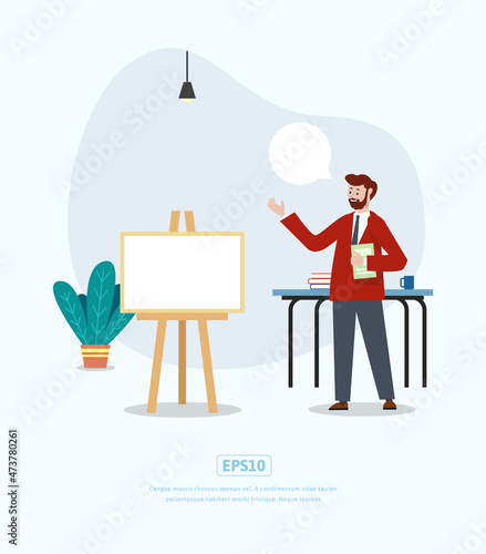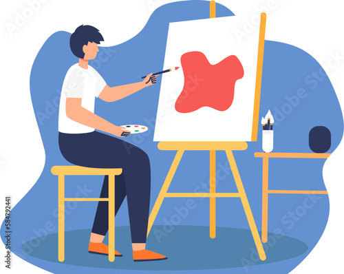 Женщина в красном берете художница рисует яблоко с помощью мольберта. Векторная плоская иллюстрация, изолированная на белом фоне. Художественное творчество, художественная и творческая концепция профессии для веб-баннера, страницы веб-сайта и т.д.