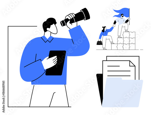 Огромный спутник и микро-мужские и женские персонажи астрономы, астрологи, изучающие астрономию, астрологию, векторная иллюстрация. Астрологическое образование, научная концепция веб-баннера, страницы веб-сайта.