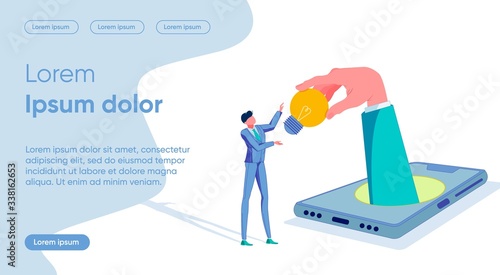 Аукцион онлайн, векторная иллюстрация. Изометрический смартфон, аукционист и нажатие пальцем кнопки ставки на экране. Аукцион и интернет-торги с концепции мобильного телефона для веб-баннера, страницы веб-сайта и т.д.