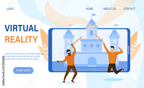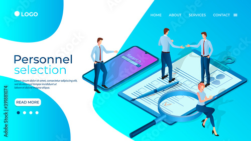Шаблон веб-сайта целевой страницы дополненной реальности. Векторная изометрическая иллюстрация человека, размещающего 3D-модели кухонных шкафов, чтобы увидеть их идеальное размещение с помощью смартфона с приложением дополненной реальности.