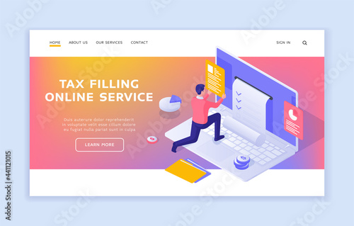 Шаблон веб-сайта целевой страницы дополненной реальности. Векторная изометрическая иллюстрация. Визуализация интерьера гостиной с мебелью и домашним кинотеатром в дополненной реальности на экране смартфона.