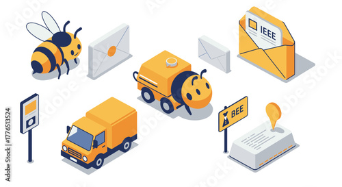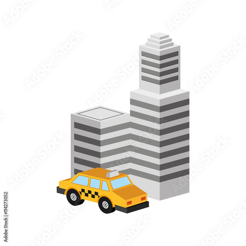 Векторная изометрическая модель желтого автомобиля на долларовых банкнотах, калькуляторе, стопке монет, диаграмме процентной ставки и знака процента. Концепция процентных ставок по автокредиту.