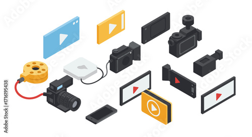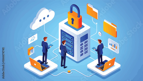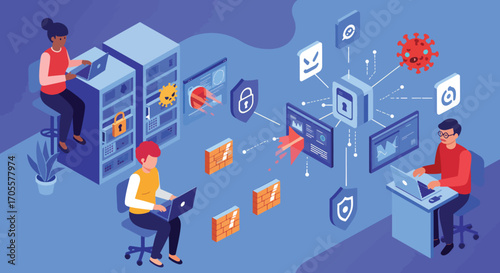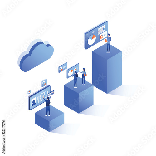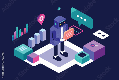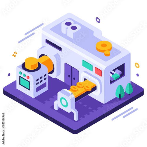 Конвейерные роботы, плоская векторная изометрическая иллюстрация. Автоматизированная производственная линия, милые роботы. Автоматизация производства и робототехнические технологии.