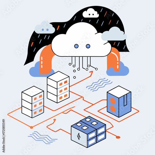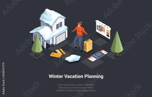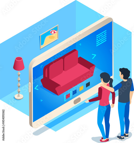 Автоматизированные роботы безопасности и наблюдения, плоская векторная изометрическая иллюстрация. Домашний сторожевой пес, камера, роботы-охранники, защищающие дом. Искусственный интеллект, помощь робототехники.