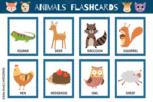 Векторный набор осенних открыток с милыми животными и рукописными осенними цитатами. Забавные животные белка, еж, сова, лиса, кролик и енот с осенними листьями, зонтиком, яблоком, морковью и т.д.