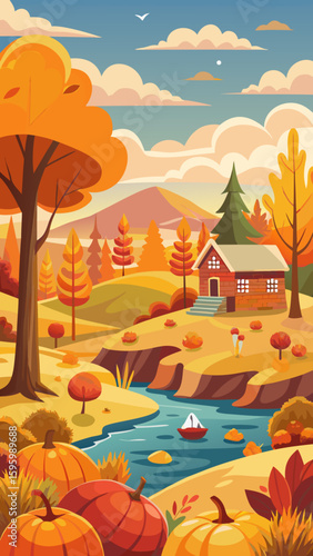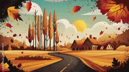 Осенний фон. Назад в школу, концепция образования. Осенние листья и облако на небе вырезаны из бумаги векторной иллюстрацией со слоистым эффектом. Поздравительная открытка в стиле крафт с учебным пособием