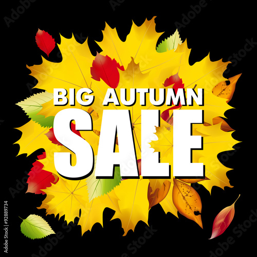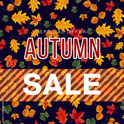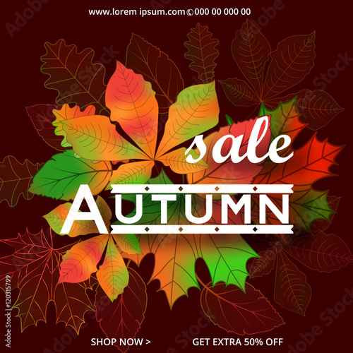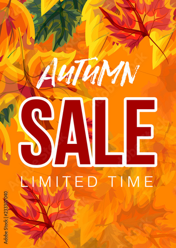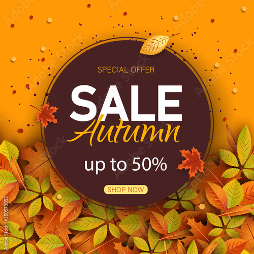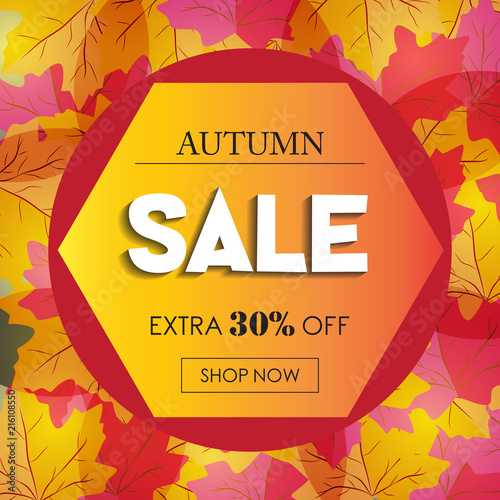 Шаблон дизайна баннера плаката сезонной осенней распродажи. Вырезанная из векторной бумаги осенняя рамка с листьями, зонтиком, облаками и надписями.